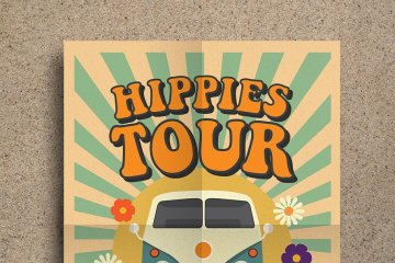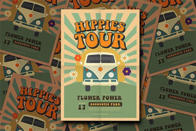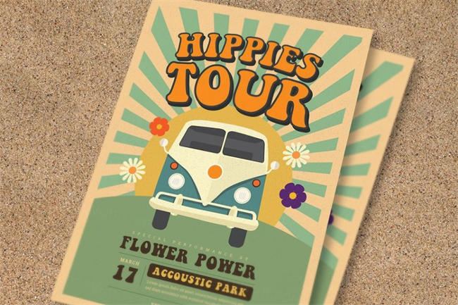 图穷联素材库 » 复古ps插画海报制作 Hippies Party Flyer