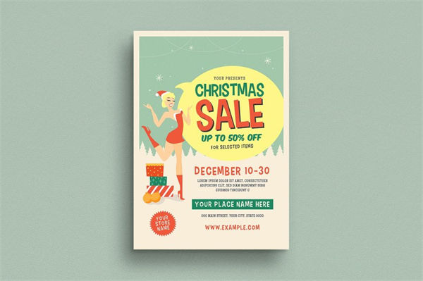 经典圣诞节创意海报模板 Retro Christmas Sale Event Flyer