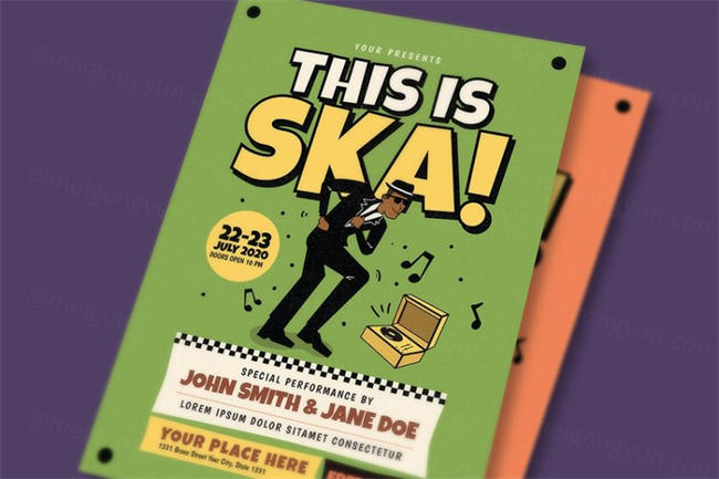 复古卡通音乐海报背景 This is Ska! Music Flyer