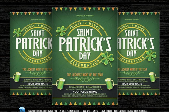 圣帕特里克节庆祝活动海报制作模板 Saint Patrick’s Day Celebration