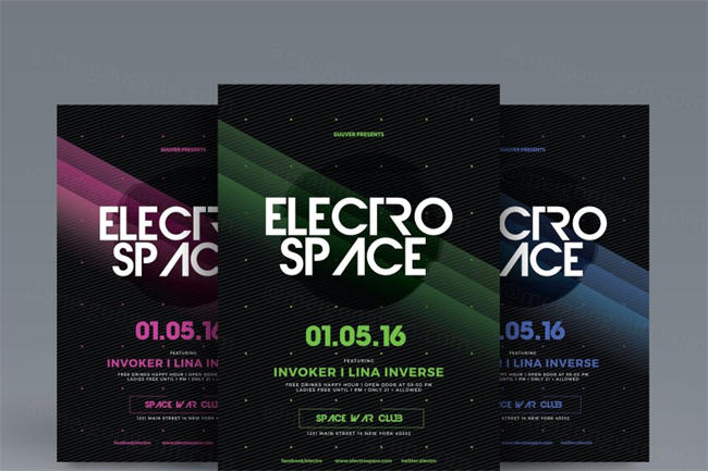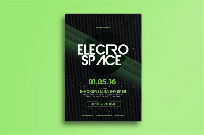图穷联素材库 » 简约酷炫电子音乐海报模板 Electro Space Party