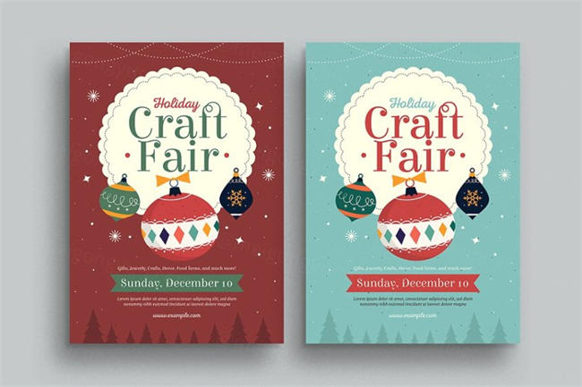 图穷联素材库 » 圣诞工艺品展销会宣传单模板 Holiday Christmas Craft Fair Flyer
