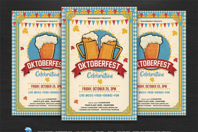 图穷联素材库 » 经典啤酒节海报设计模板 Oktoberfest Flyer