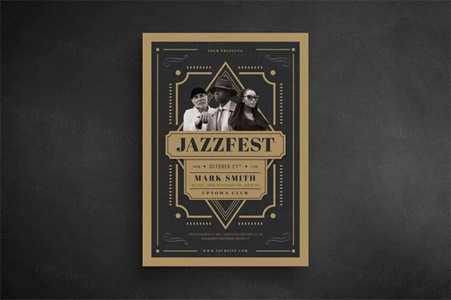 图穷联素材库 » 爵士音乐海报设计模板 Jazz Festival Flyer