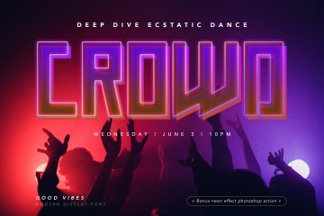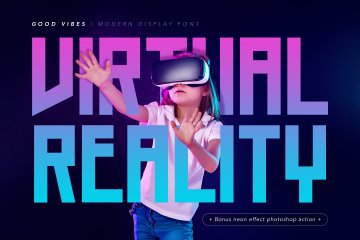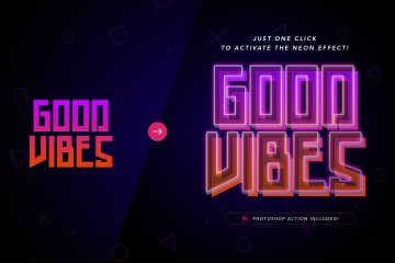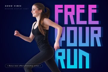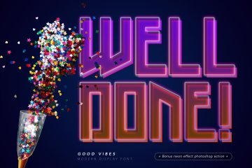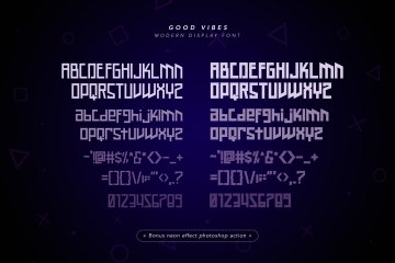 Good Vibes带有霓虹效果的Photoshop动作奖励。它可以帮助您轻松地为该字体制作霓虹灯效果!