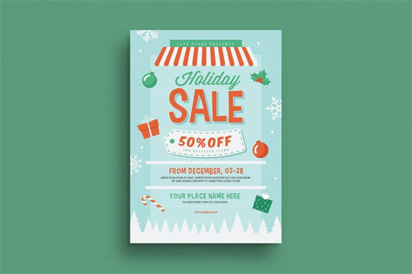 假日圣诞节促销宣传海报 Holiday Christmas Sale Flyer