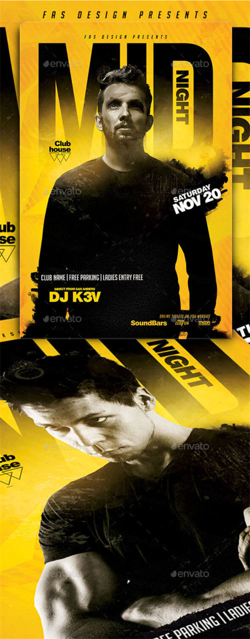 图穷联素材库 » DJ音乐酒吧夜总会派对传单设计模板Mid Night Flyer Template