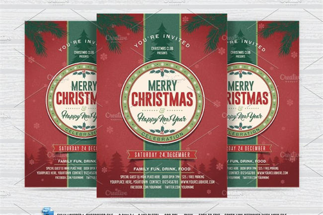 图穷联素材库 » 复古圣诞节海报制作 Merry Christmas Flyer