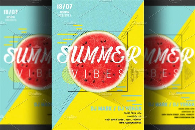图穷联素材库 » 夏季西瓜海报设计 Summer Vibes Flyer Template