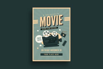 复古电影节海报制作 Old Retro Movie Festival Flyer