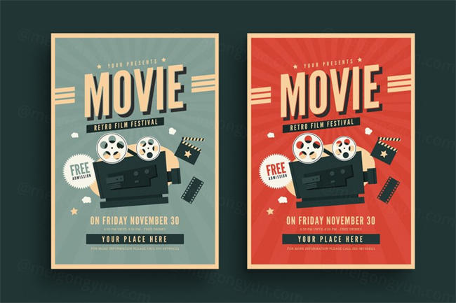 图穷联素材库 » 复古电影节海报制作 Old Retro Movie Festival Flyer