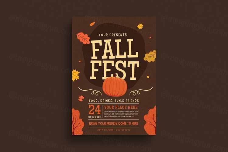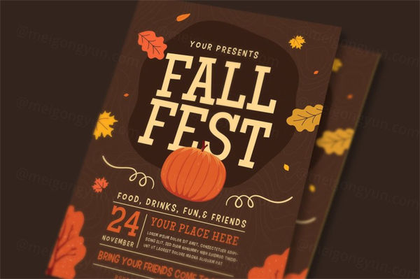 感恩节秋季元素海报设计 Fall Festival Flyer