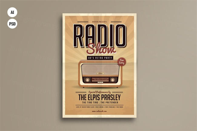 图穷联素材库 » 经典收音机海报制作 Retro Radio Party Flyer