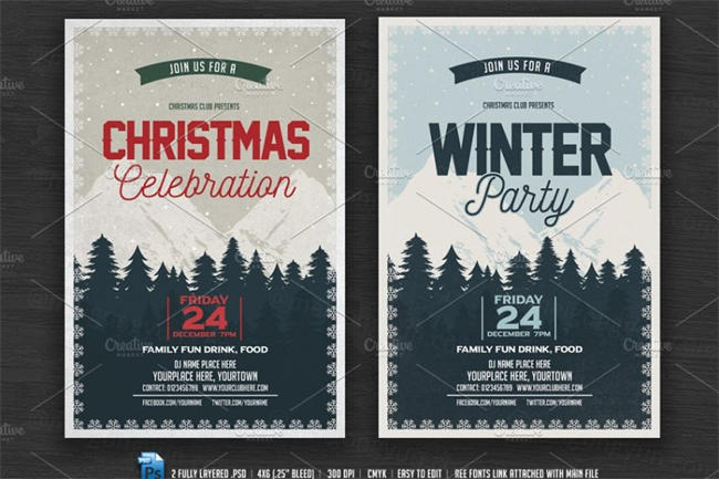 图穷联素材库 » 复古圣诞活动海报设计 Christmas Party