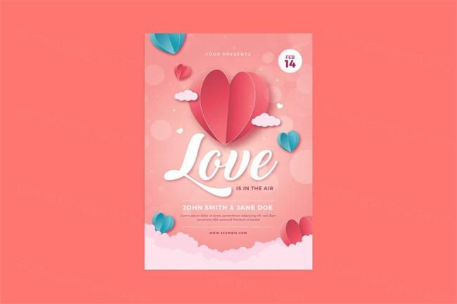 可爱的情人节爱心海报设计 Valentine Event Flyer