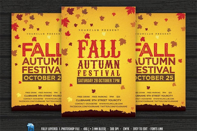 秋季节日海报设计 Fall Autumn Festival Flyer