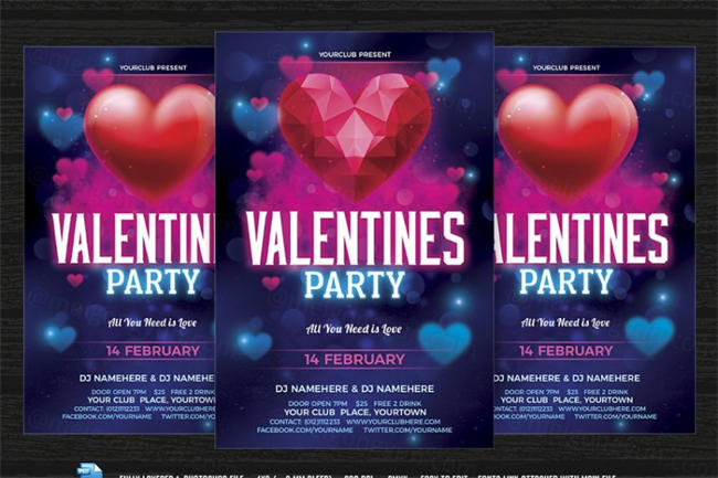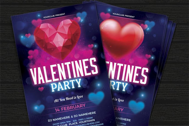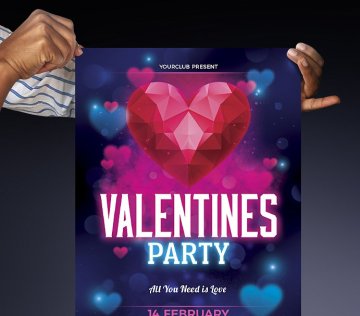 多边形情人节海报设计 Valentines Day Flyer