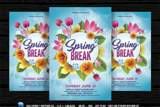 图穷联素材库 » 春季花卉海报设计模板 Spring Break Flyer