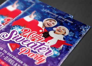 圣诞节海报背景模板 Ugly Christmas Sweater Party Flyer