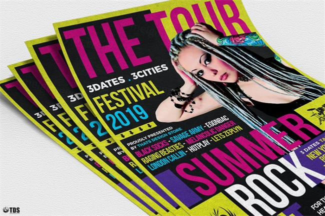 图穷联素材库 » 夏季摇滚音乐海报设计模板 Summer Rockfest Flyer PSD