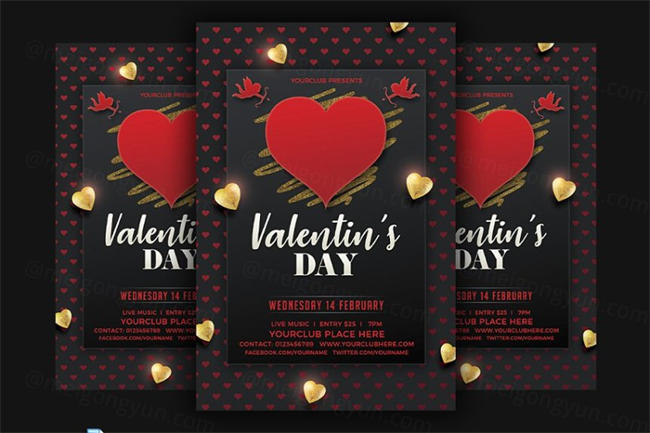 图穷联素材库 » 浪漫的情人节海报模板 Valentines Day Party Flyer Template