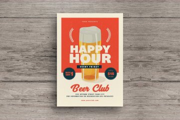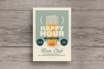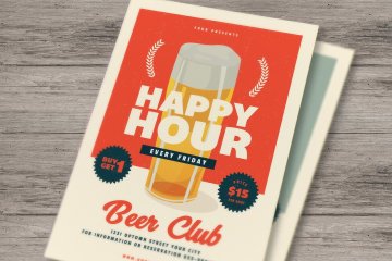 复古的欢乐时光啤酒传单 Retro Happy Hour Beer Flyer
