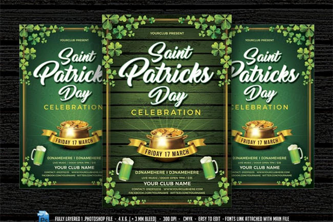 圣帕特里克节绿色派对海报设计模板 Saint Patrick’s Day Party