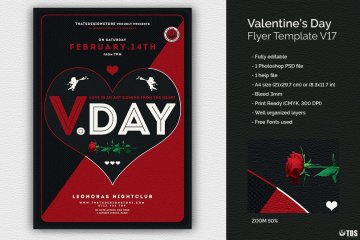 图穷联素材库 » 情人节海报制作模板 Valentines Day Flyer PSD V17