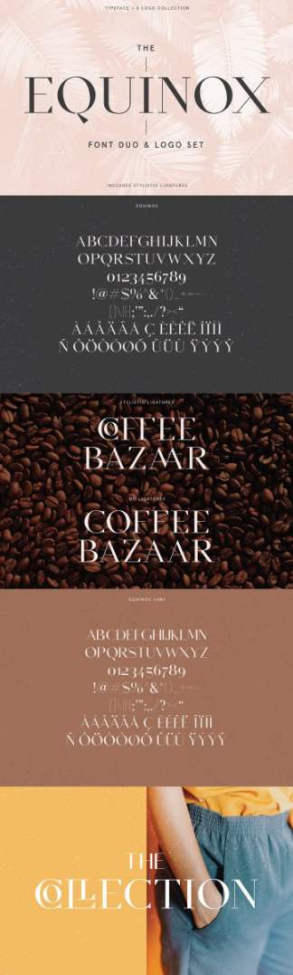 Equinox字体二重奏是一种现代,独特的sans serif和serif字体组合。Equinox和Equinox sans-serif均设计为可以在徽标,杂志标头,品牌字体甚至正文中完美地结合使用。