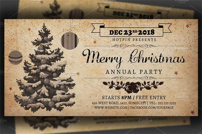 经典圣诞节海报模板 Vintage Christmas Invitation