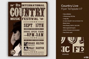 图穷联素材库 » 经典乡村音乐海报模板 Country Live Flyer PSD V7