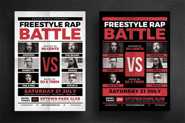 图穷联素材库 » 音乐对战宣传海报模板 Rap Battle Music Flyer