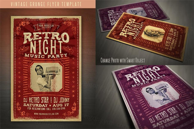 图穷联素材库 » 经典摇滚海报设计模板 Vintage Grunge Flyer