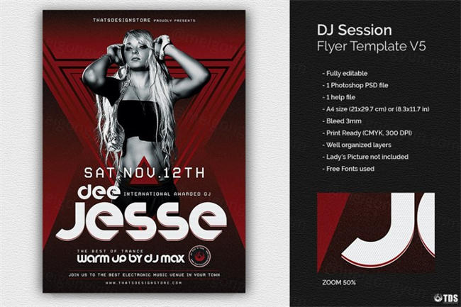 图穷联素材库 » DJ音乐海报设计模板 DJ Session Flyer PSD V5