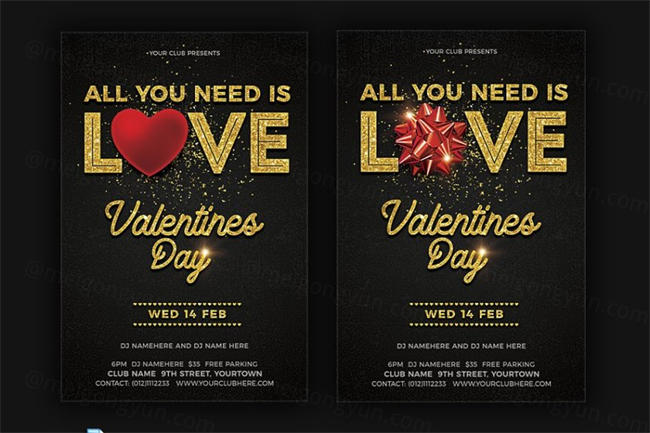 图穷联素材库 » 情人节海报设计模板 Valentines Day Flyer
