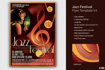 图穷联素材库 » 爵士乐活动宣传单模板 Jazz Festival Flyer PSD V4