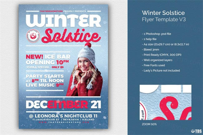 图穷联素材库 » 简洁的冬季海报设计PSD模板 Winter Solstice Flyer
