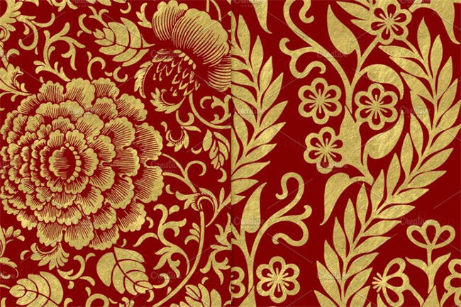 图穷联素材库 » 栗色和金色的碎花纸传单设计 Maroon and Gold Floral Papers