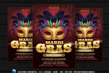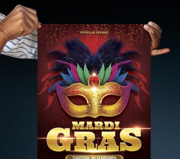 狂欢节面具化妆舞会宣传海报 Mardi Gras Carnival Flyer