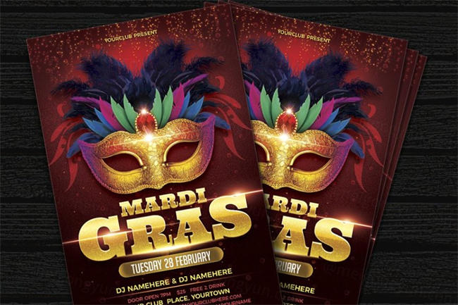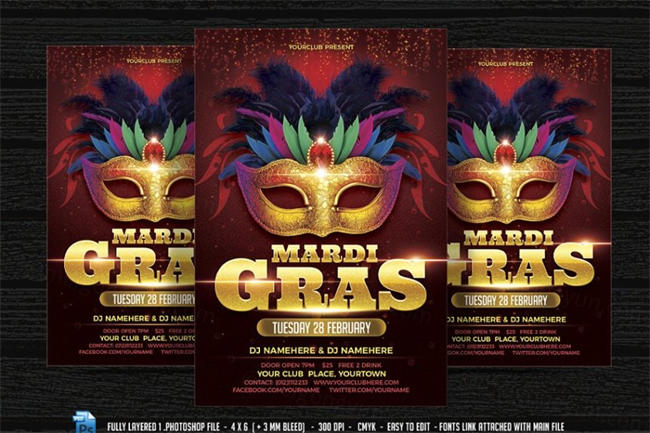 图穷联素材库 » 狂欢节面具化妆舞会宣传海报 Mardi Gras Carnival Flyer
