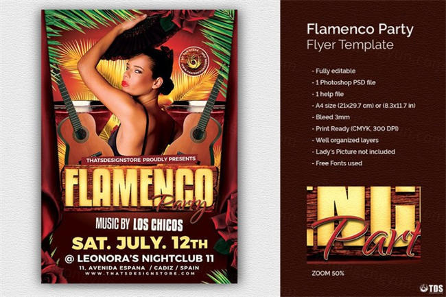 图穷联素材库 » 派对海报设计下载 Flamenco Party Flyer PSD