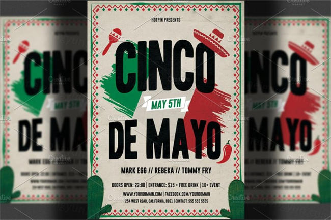 图穷联素材库 » 墨西哥海报制作模板 Cinco De Mayo Party Flyer Template