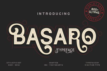 新字体发布! Basaro字体是所有大写字母的无衬线字体,根据创建方式具有许多字母组合。该字体的灵感来自具有各种斜率的典雅经典风格。配备样式集:ss01-ss12,每个字母12个替代选择。非常易于使用,非常适合标题,徽标,海报,包装,T恤,明信片等等。