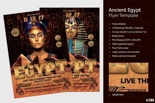 图穷联素材库 » 古埃及主题传单PSD模板 Ancient Egypt Event Flyer