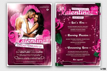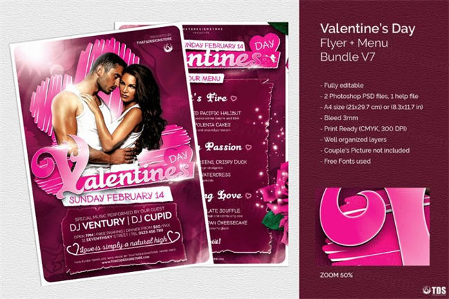 图穷联素材库 » 情人节主题传单PSD模板v7 Valentines Day Flyer Menu