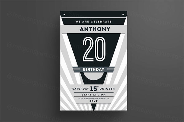 图穷联素材库 » 时尚高端简约好用的多功能生日会海报周年庆宣传单minimal-deco