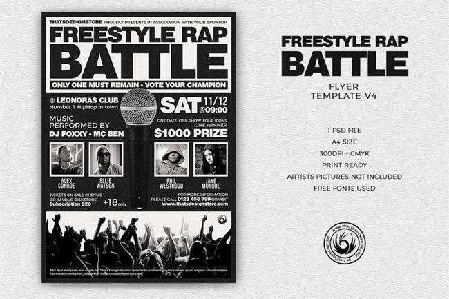 自由式说唱战斗传单海报PSD Freestyle Rap Battle Flyer