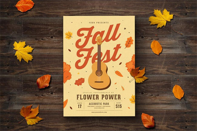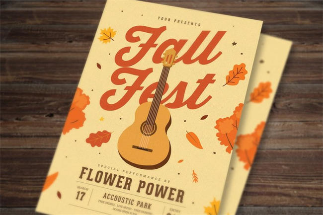 图穷联素材库 » 秋季音乐会海报模板 Fall Coustic Event Flyer
