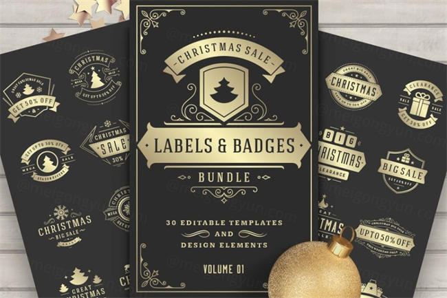 图穷联素材库 » 9圣诞节销售海报 30 Christmas Sale Labels and Badges