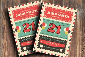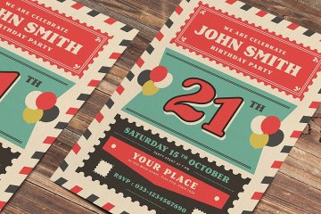 图穷联素材库 » 旧复古航空生日聚会海报 Old Retro Airmail Birthday Party